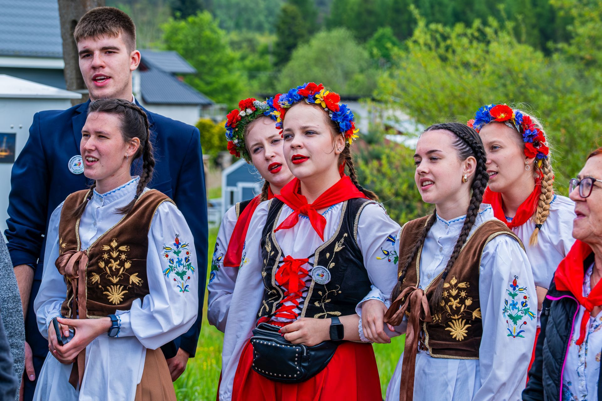 Obraźnicy i obraźniczki z Przodkowa w strojach stylizowanych na strój kaszubski