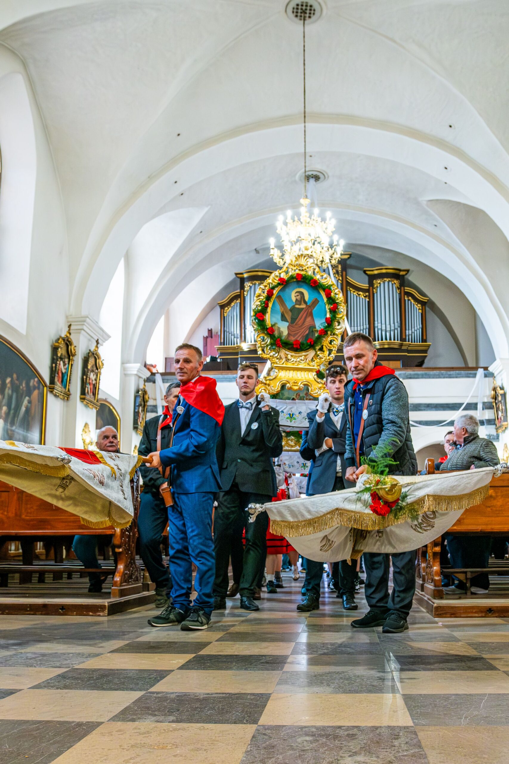 Obraźnicy z Parafii pw. św. Andrzeja Apostoła w Przodkowie podczas wykonywania pokłonu