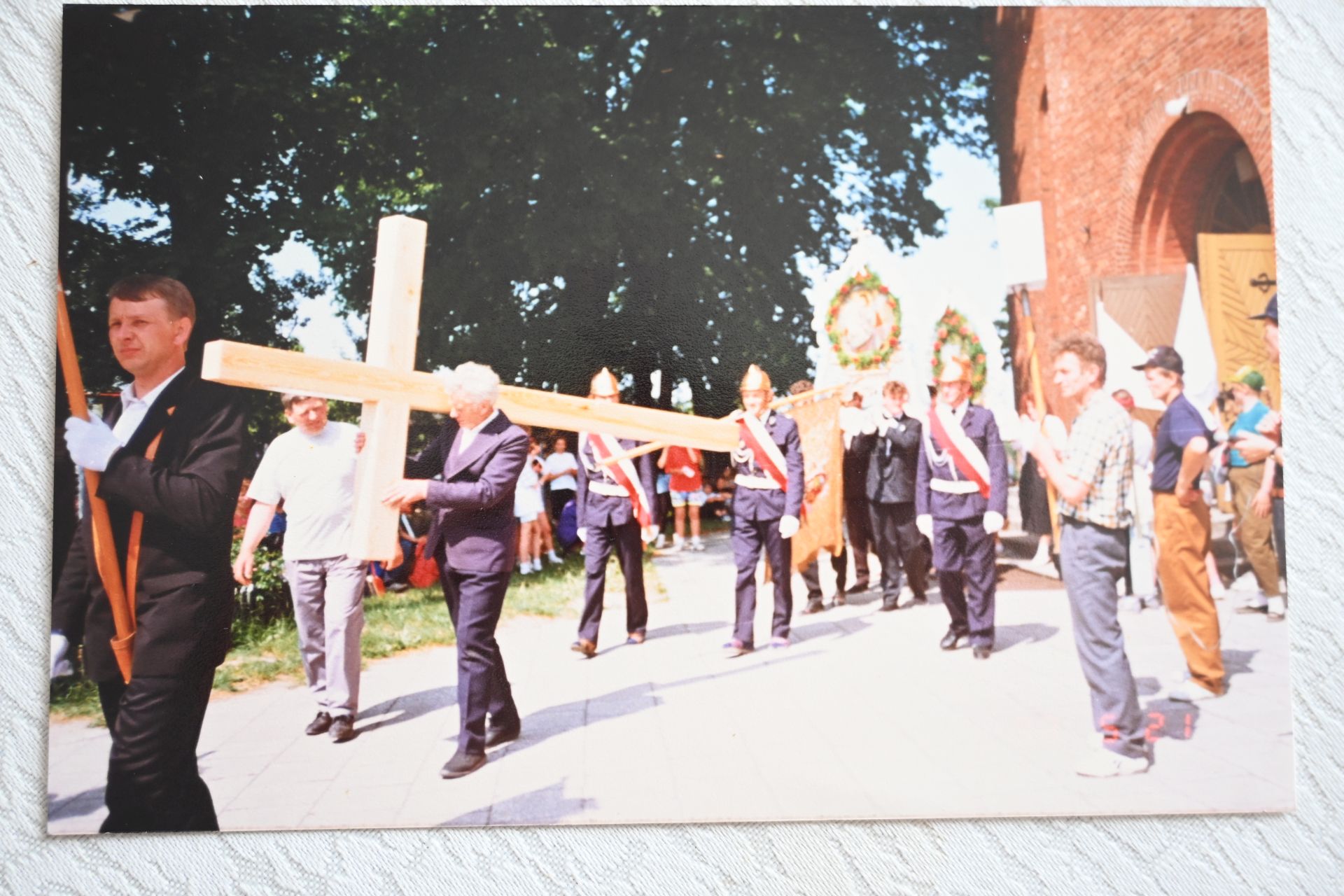 Brunon Szulca idzie z pielgrzymką w intencji swojego syna Wiesława, który wstąpiłdo nowicjatu franciszkanów. Chodził z nim przez 6 lat