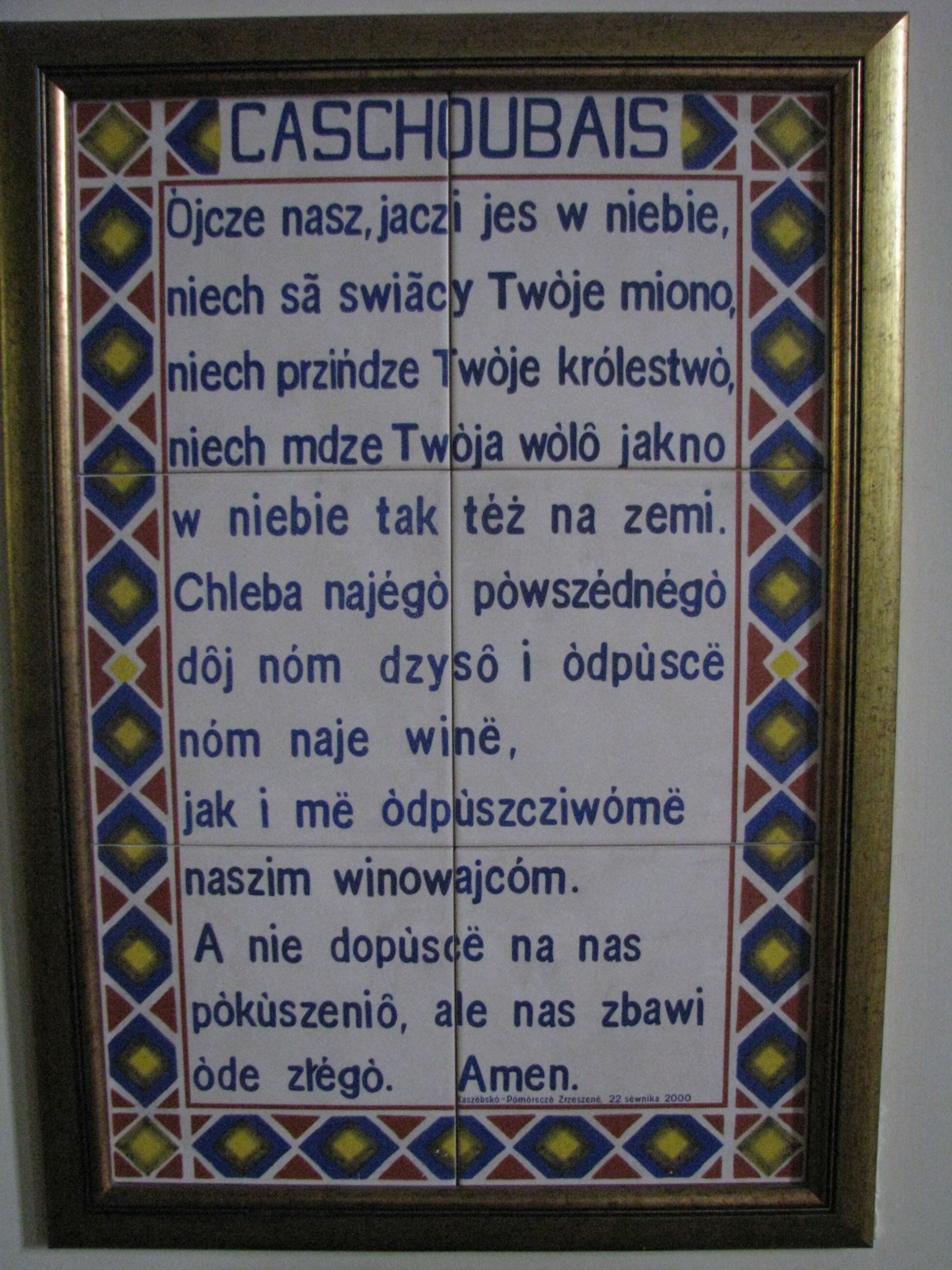 Replika tablicy ze słowami Modlitwy Pańskiej w języku kaszubskim, zawieszonej w Bazylice Pater Nosterw Jerozolimie w 2000 r.